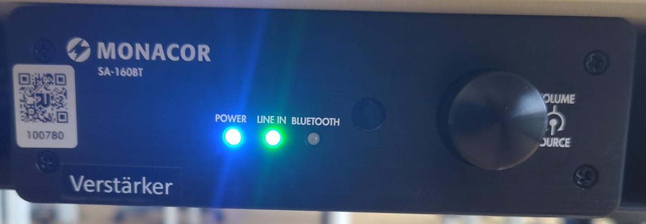 Durch einmaliges Drücken auf den Lautstärkeregler (runder Knopf) kann die Bluetooth-Verbindung aktiviert werden, durch nochmaliges drücken wird sie wieder ausgeschaltet.